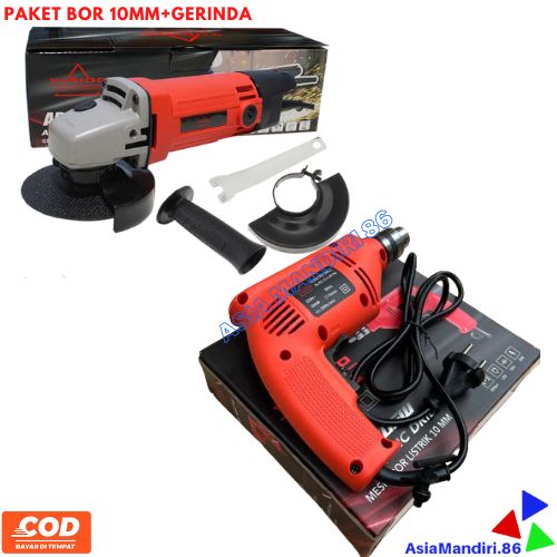 PAKET GERINDA + BOR 10MM VARIABLE SPEED / GERINDA TANGAN / MESIN BOR BOLAK BALIK