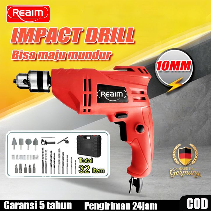 Reaim Mesin Bor Listrik 13mm Bolak Balik Electric Drill Bor Beton Kayu Besi Tembok Bor Listrik