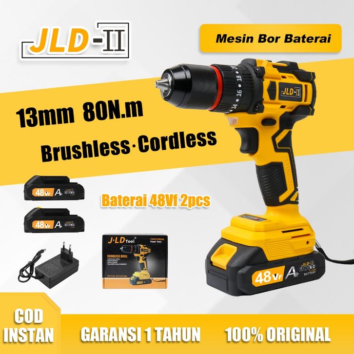JLD-II Brushless Mesin Bor Baterai 80N.M 13mm Cordless Impact Drill 48Vf Dapat Mengebor Beton Besi