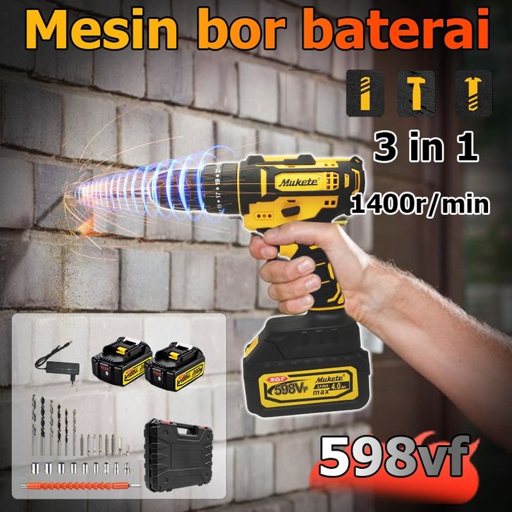 10mm 3 in 1 Bor Baterai bor cordless mesin bor baterai bor impact baterai 598VF Bor cas Mesin Bor
