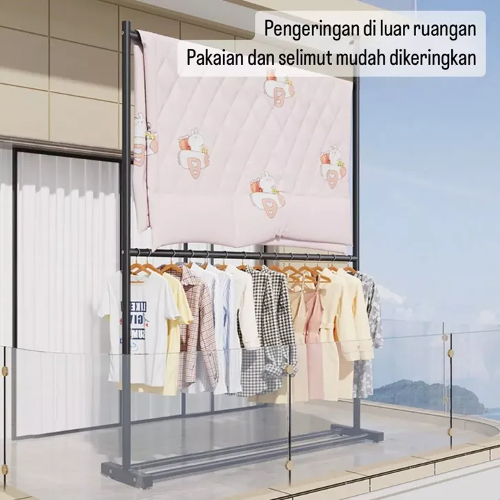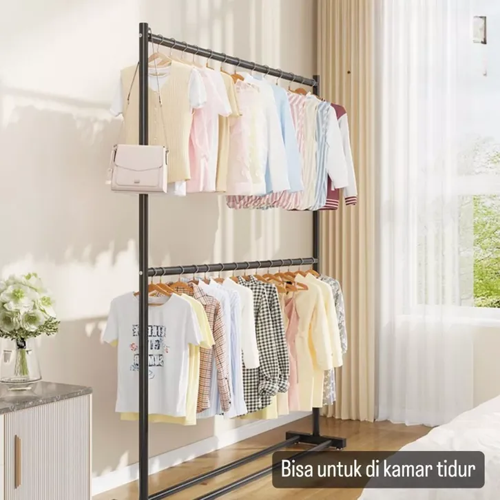 Rak Gantungan Baju Besi Stand hanger double Gawang Baju Jemuran Pakaian Portable Rak Baju Hanger