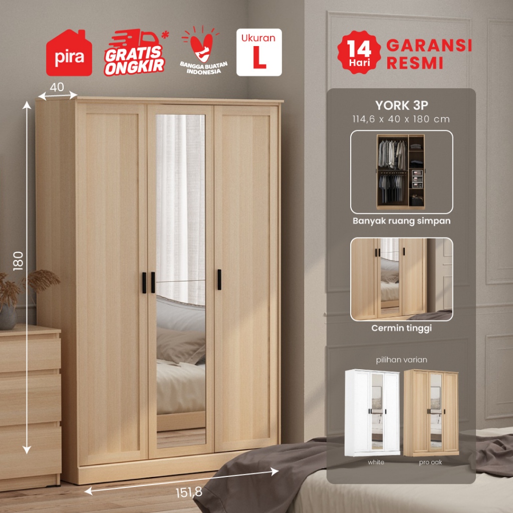 PIRA METROPOLIS YORK 3P LEMARI PAKAIAN 3 PINTU