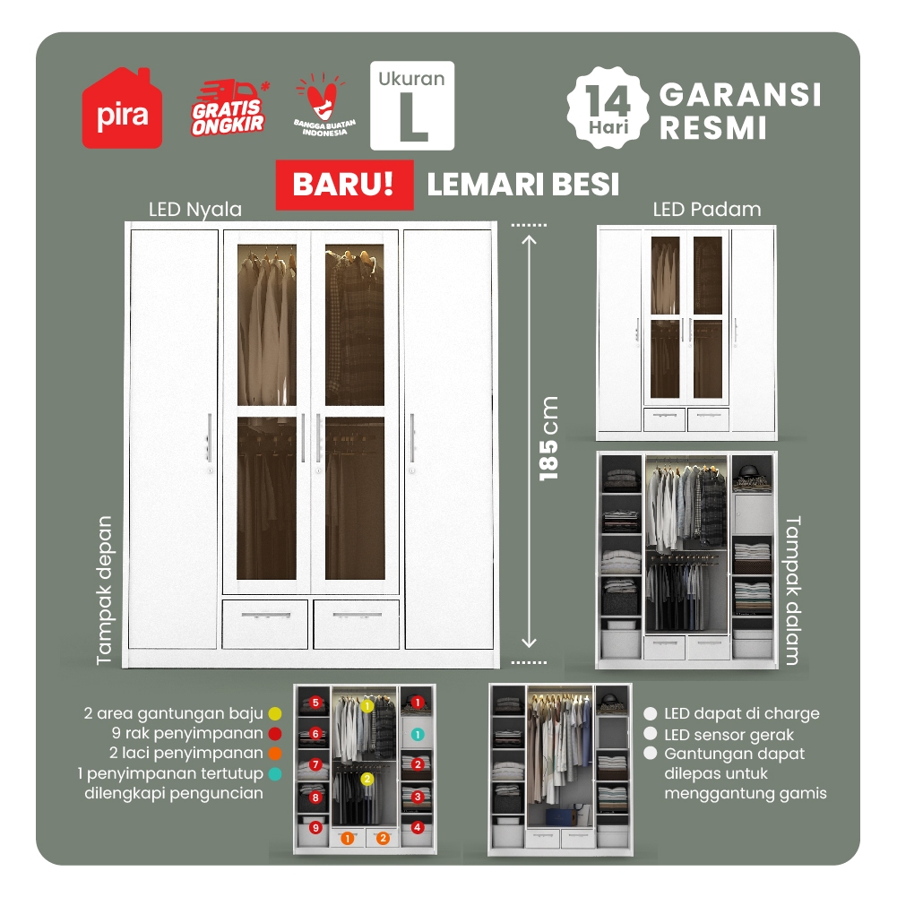PIRA METROPOLIS STEEL 4P FGD MWD LEMARI PAKAIAN BESI 4 PINTU DENGAN LACI DAN LED