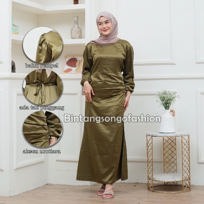 YANG LAGI VIRAL!!! Elora Dress Satin Silk Premium Baju Fashion Wanita Kondangan Wisuda Couple Muslimah Gamis Lebaran Bri