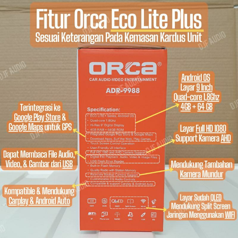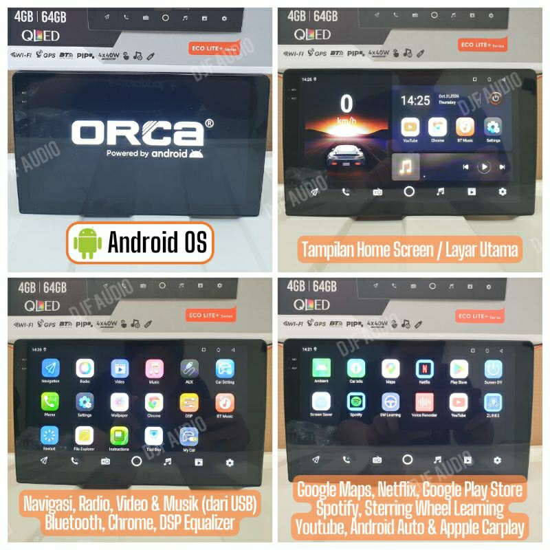 Android Orca ADR 9988 - 9" - 4/64 - ECO LITE PLUS - 9 Inch Ram 4GB - 64GB - Wifi Youtube Maps - Head Unit Double Din Universal