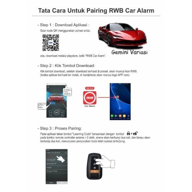 Alarm Mobil Merk RWB Car System Smart Phone Android Model Tuktuk