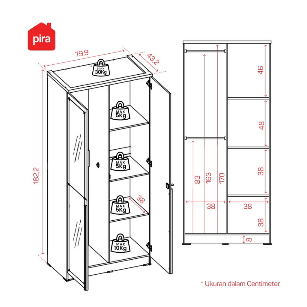 PIRA METROPOLIS YONA AVA 2P LEMARI PAKAIAN 2 PINTU