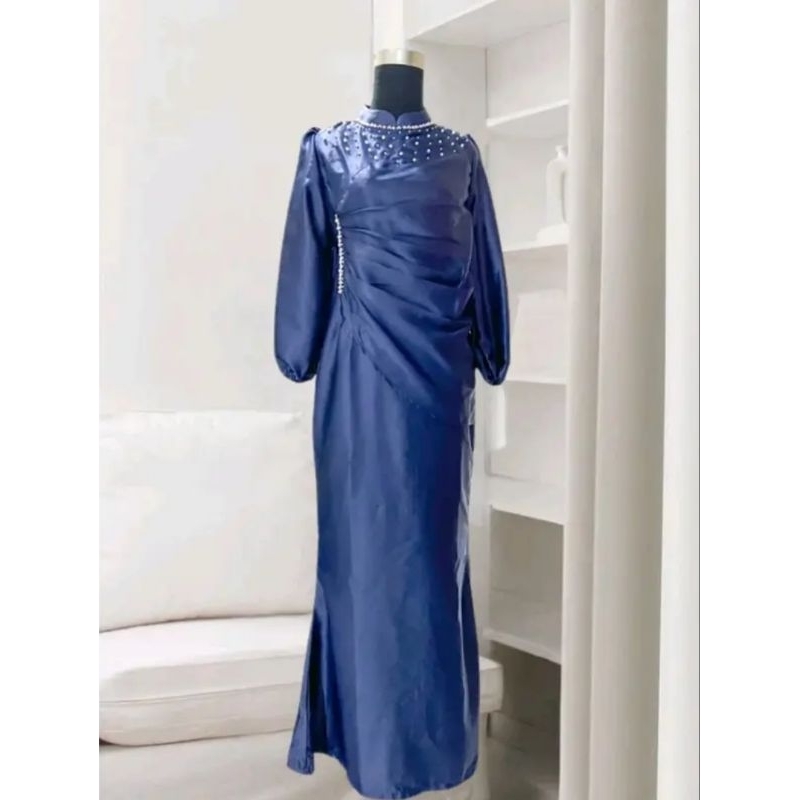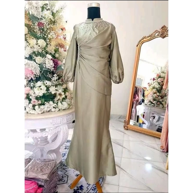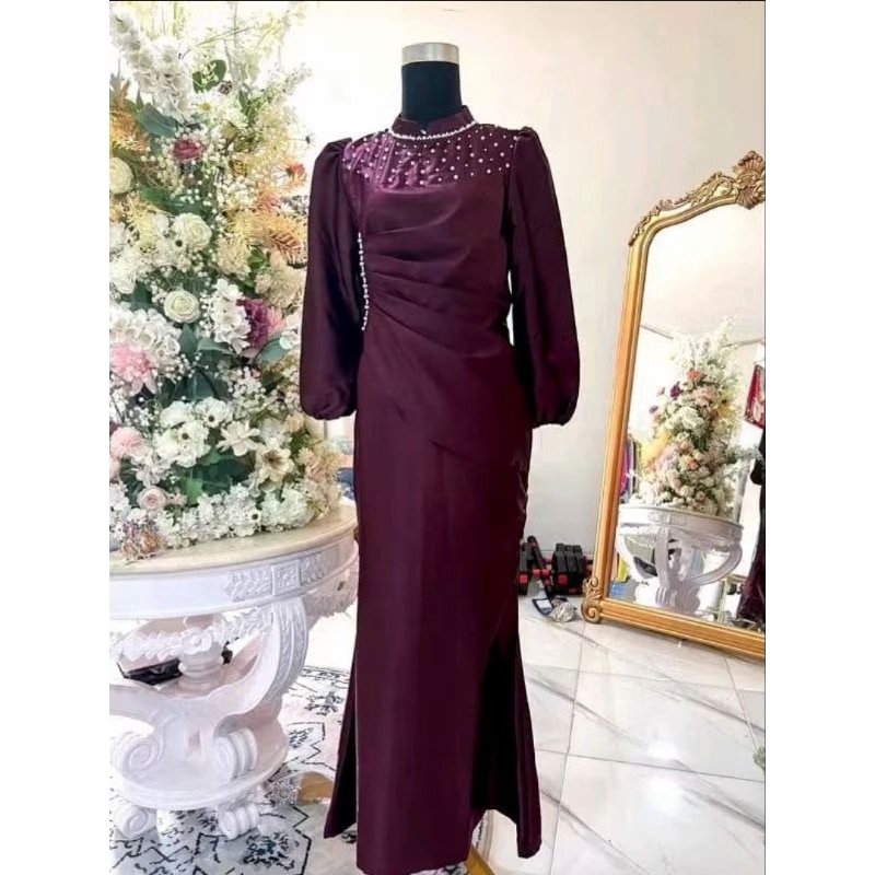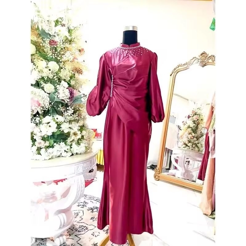 Vina Dress Satin Silk Premium Gamis Pesta Wanita Bridesmaids Kondangan Lamaran Lebaran Mewah Terbaru