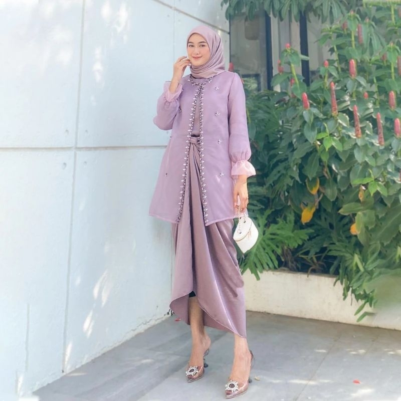 NEW ONE SET JEMMA ORGANZA SATIN MAXMARA BAJU KONDANGAN KEKINIAN OOTD TRENDY 2023 BY ZEFA BUSANA SETELAN BAJU WISUDA KEKI