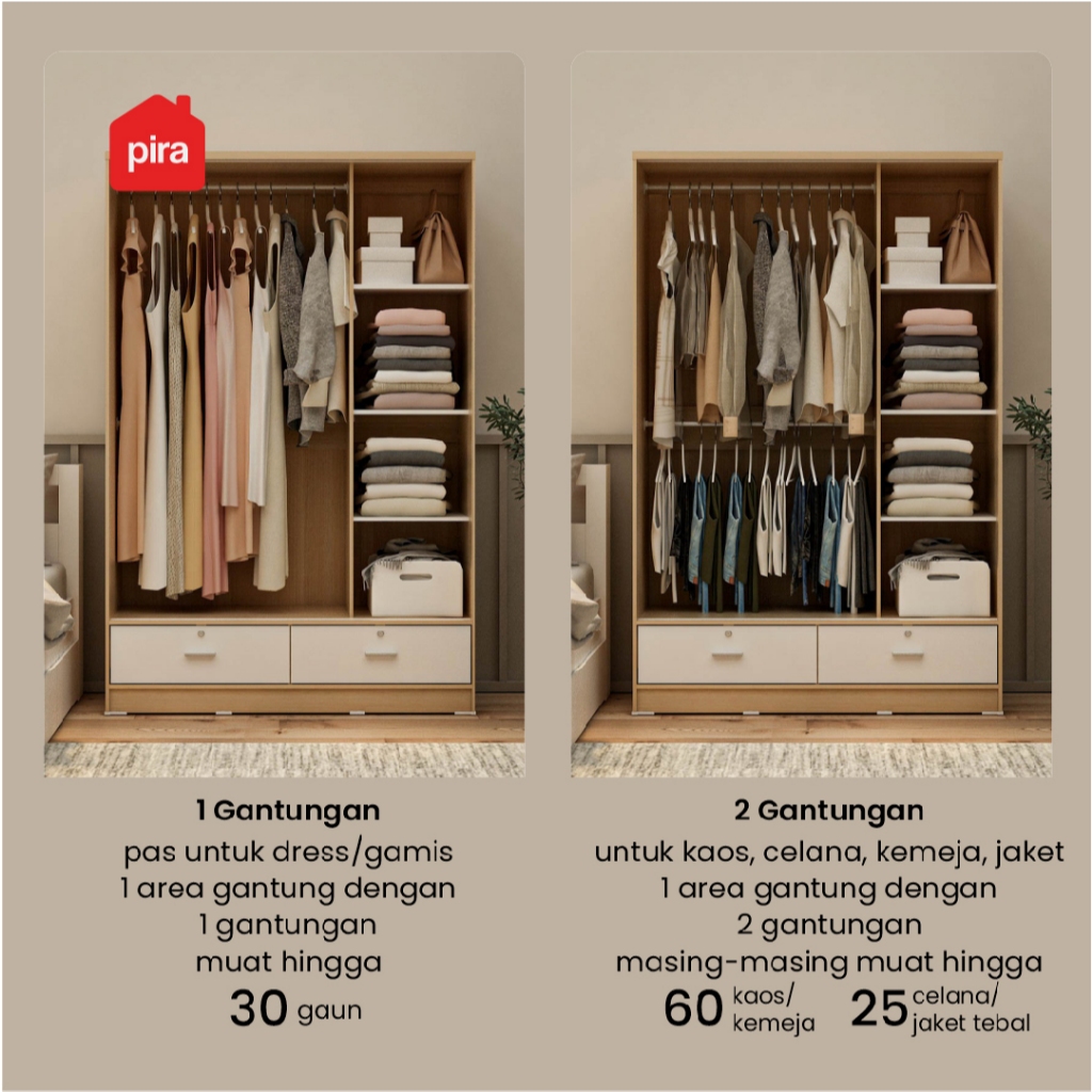 PIRA METROPOLIS OX ARUNA WDSL120D LEMARI PAKAIAN PINTU GESER LEMARI SLIDING DENGAN LACI