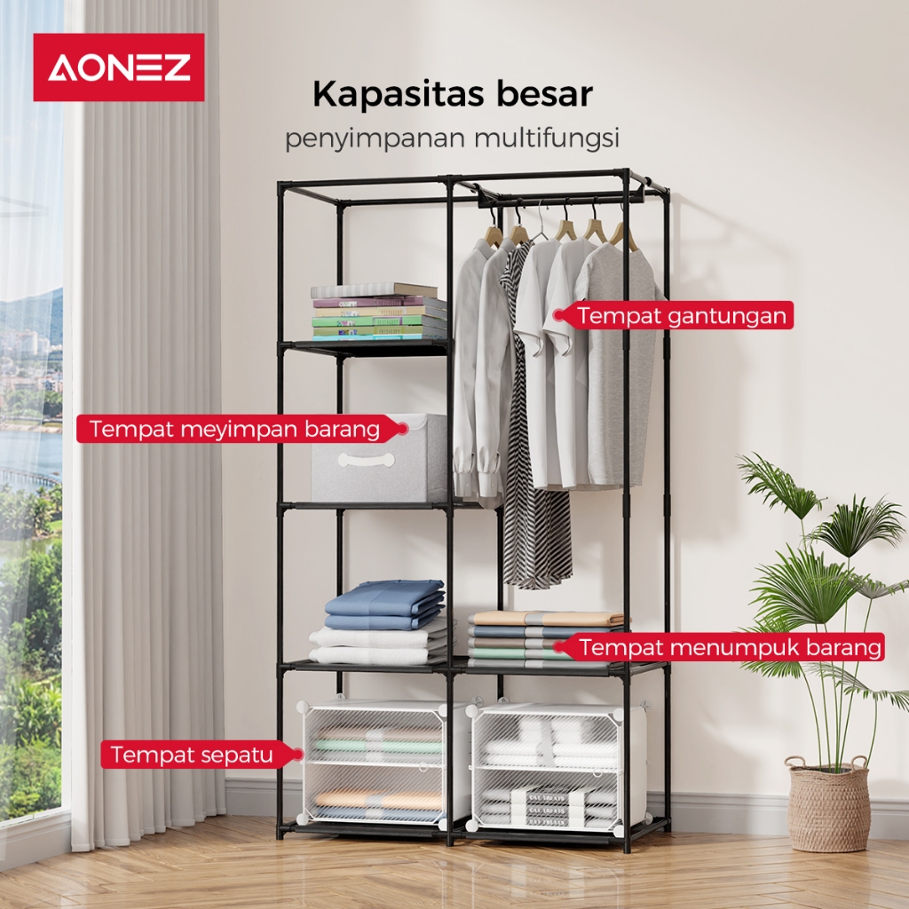 AONEZ LEMARI PAKAIAN MINIMALIS WARDROBE PORTABLE RAK SERBAGUNA BAJU