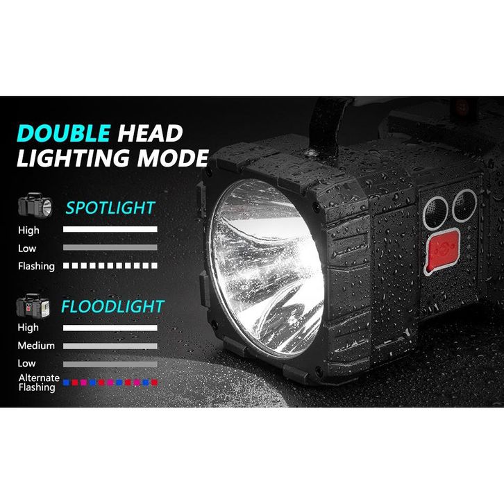 Senter LED Double Head Rechargeable Lampu Darurat Waterproof IP65 3 e Lighting Super Terang