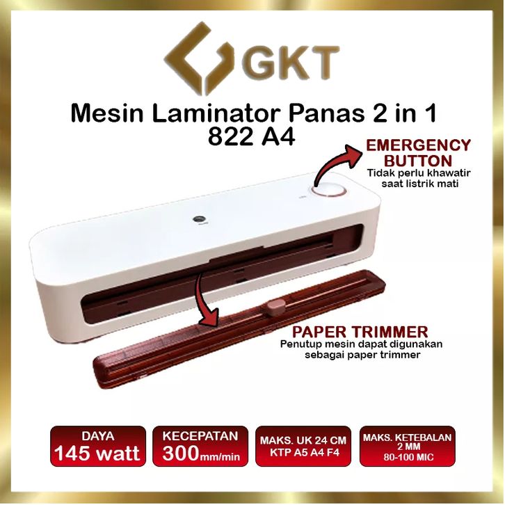 Mesin Laminating A4 / F4 6 IN 1 ( 230 mm ) 821/ 822 / 823 Fitur Combo Laminating + Paper Trimmer + Emergency Button