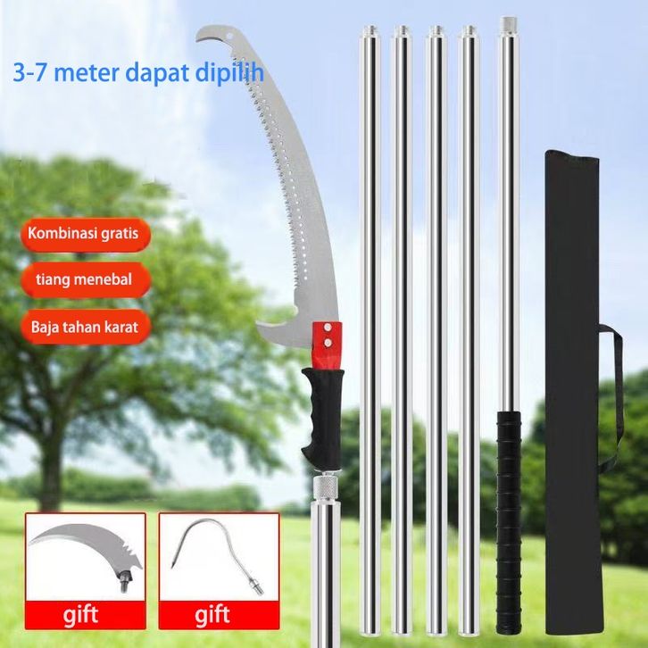 3-7M Gergaji tiang kombinasi gergaji pemangkas cabang tinggi, peralatan berkebun