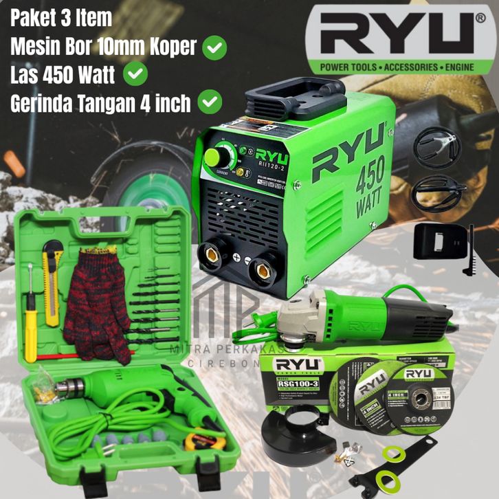 Bor Mesin Las 450 watt Trafo Las Listrik Mesin Las 450 watt Lengkap Gerinda ryu Bor Koper 10mm
