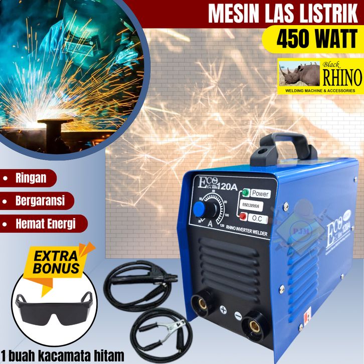 Rhino Mesin Las Listrik 450 Watt 120 A Eco/ Travo Las Inverter 120 Ampere 450 Watt 100% Orinal Ber