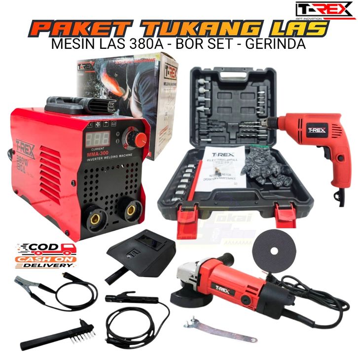 PAKET Mesin Las T-REX Bor Set 10mm Gerinda Mesin Las Inverter MMA 130A 380 watt Mesin las listrik