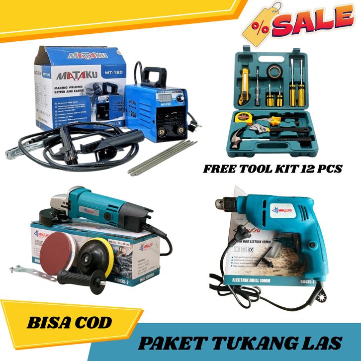PAKET Hemat 3 ITEM Mesin Las 450 Watt RYU 120a Trafo Travo Las + Mesin Gerinda 4 inch + Bor Ryu 10mm