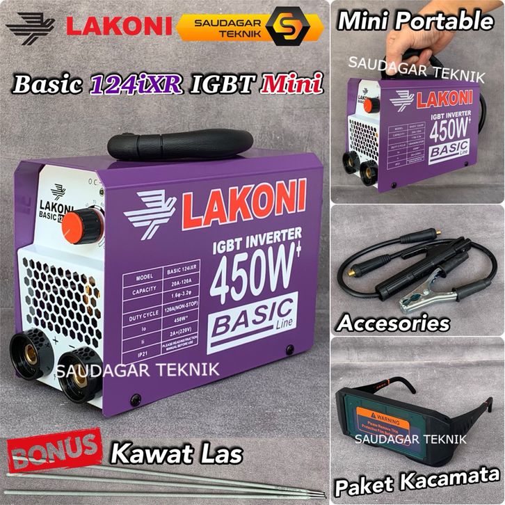 Mesin Las Mini Lakoni Basic 124ixr 450 watt Hemat Listrik Inverter Trafo Las Lakoni 124 IXR 120A