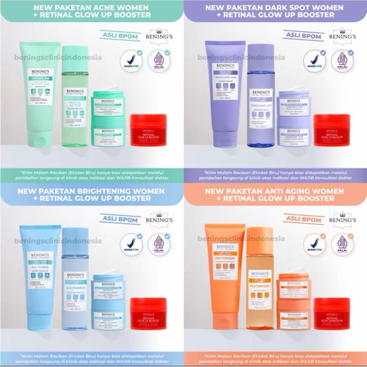 Bening's Paket Dasar Skincare FREE Retinal Glow Up BOOSTER Benings Clinic