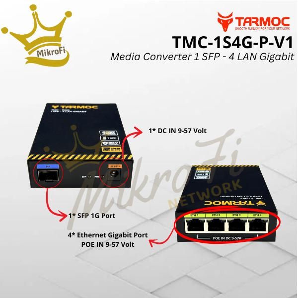 Tarmoc TMC-1S4G-P-V1 | Media Converter 1 SFP - 4 LAN G POE-in (9-57V)