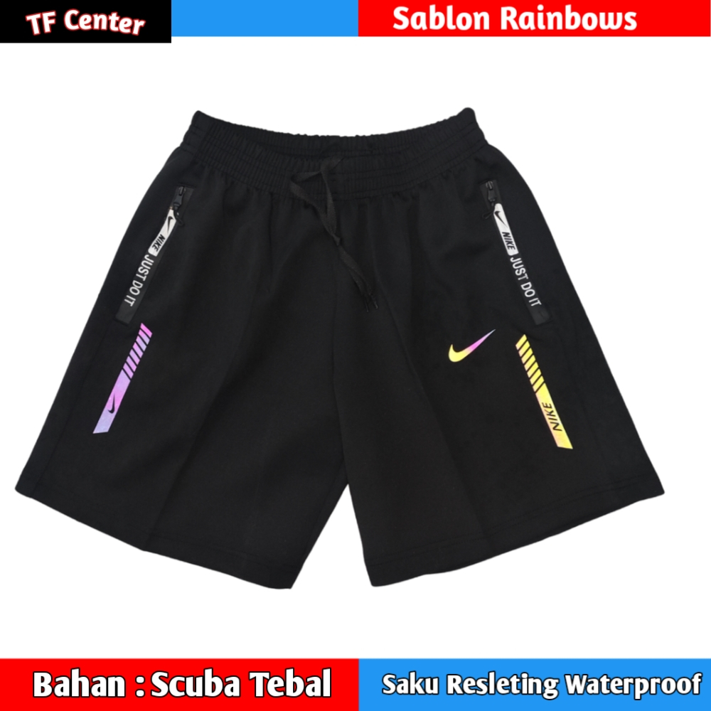 Celana Pendek Scuba Olahraga Saku Resleting Running Gym Jogging