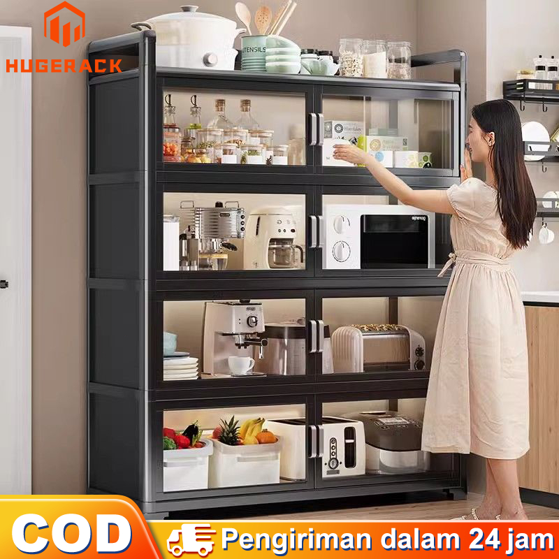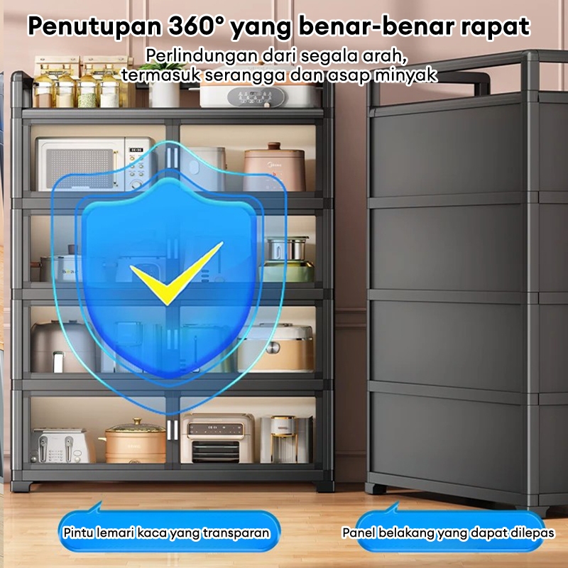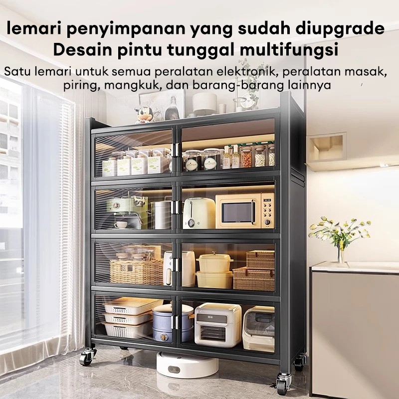 RAK DAPUR LEMARI RAK KABINET DAPUR RAK PIRING LEMARI DAPUR RAK OVEN MICROWAVE RAK PENYIMPANAN MULTI-LAYER DENGAN RODA PINTU