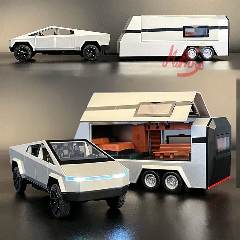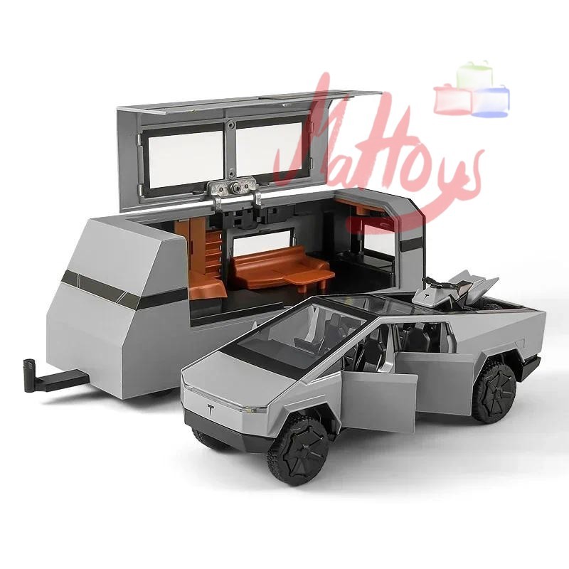 1:32 Tesla Cybertruck Pickup Trailer Diecast Vehicle Miniature el koleksi Hobi pajangan hadiah