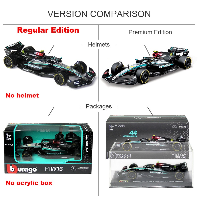 Bburago 2024 1:43 F1 Mercedes-AMG W14 W15 #44 Hamilton last1 #63 Russell SF24 RB20 Diecast Alloy Car el Toy Collection