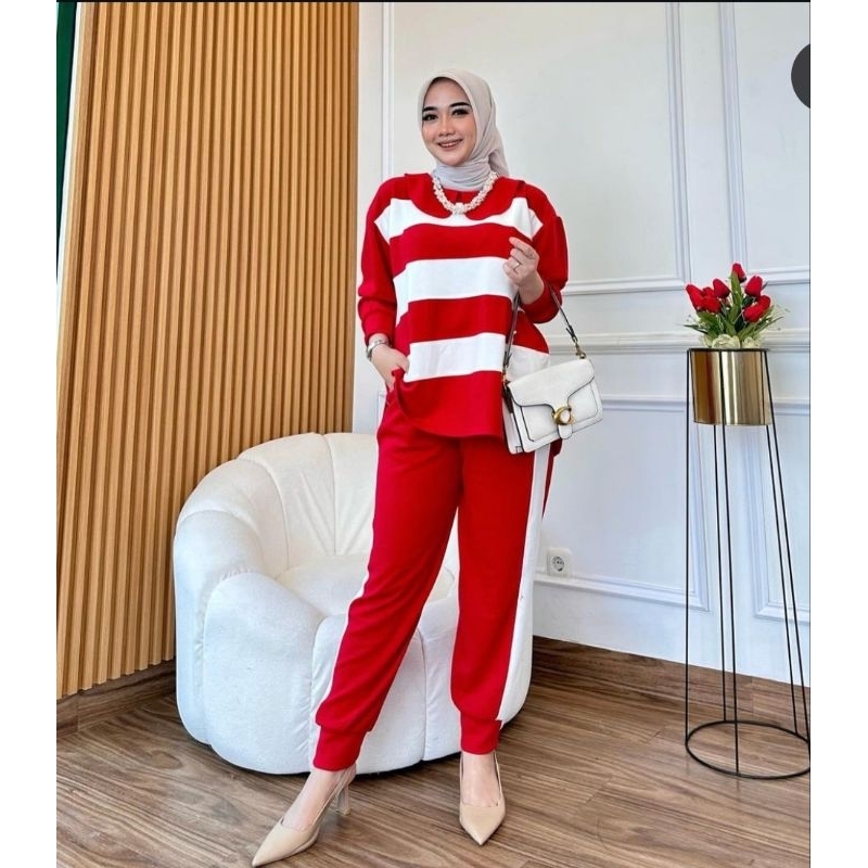 Azura Set Merah Putih Agustusan / setelan merah putih / setelan celana / Set Jogger / setelan busana muslim / set 17 agu