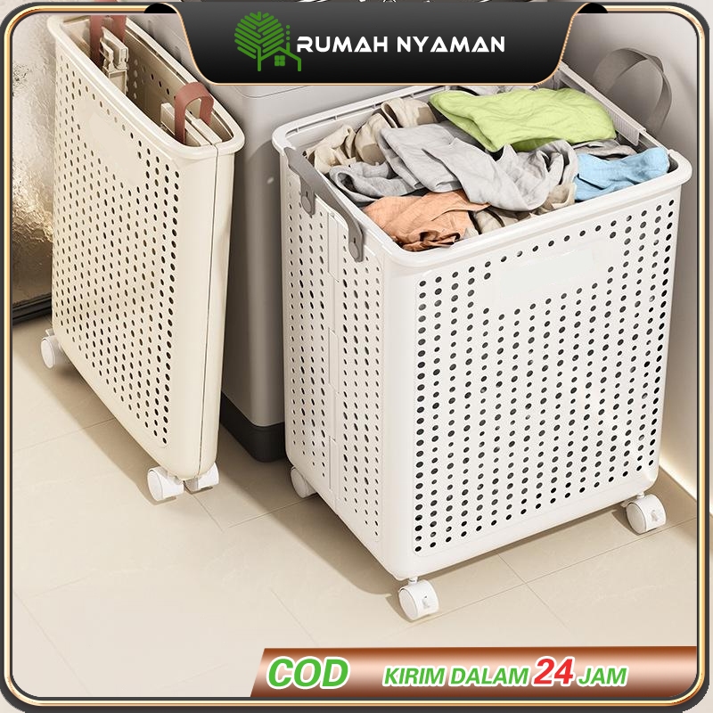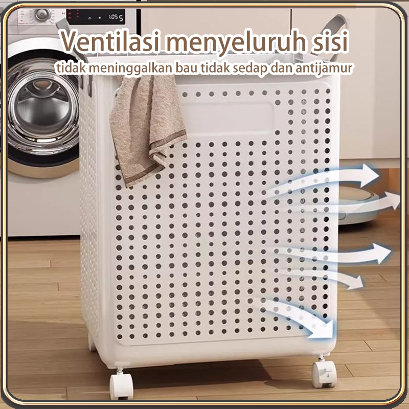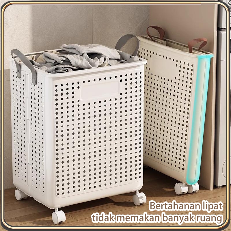 Kosong Baju Cuci Lipat Berroda - Folding Laundry Basket dengan Roda untuk Kamar Tidur