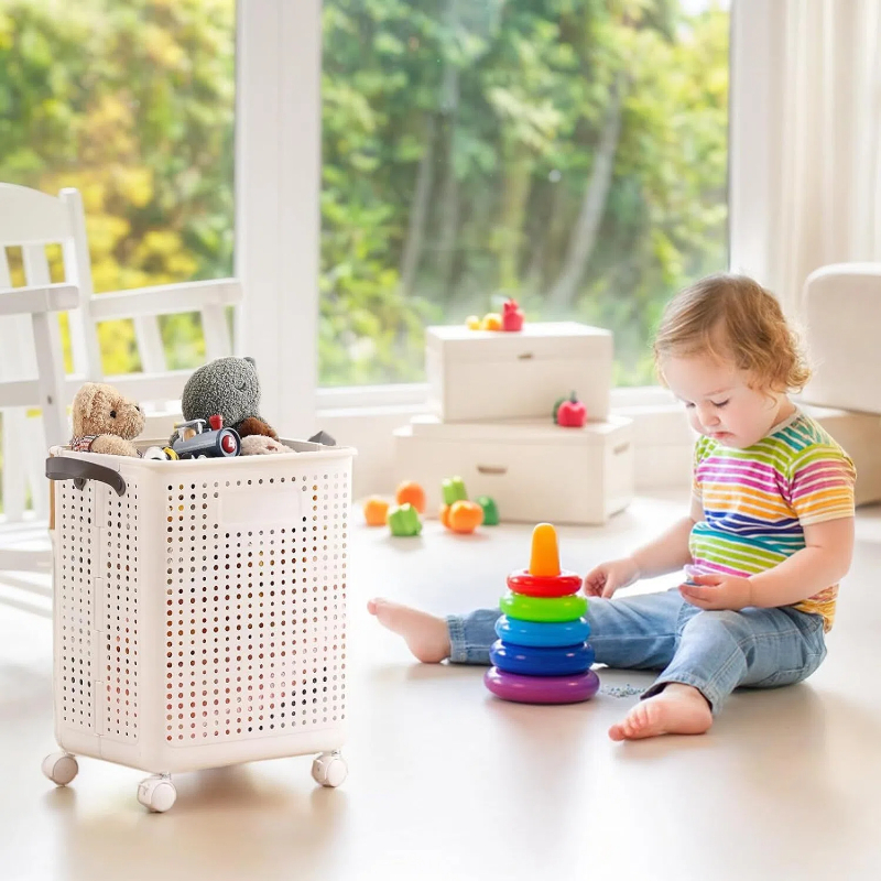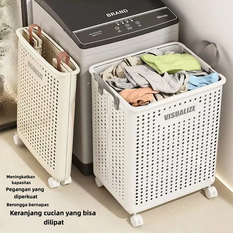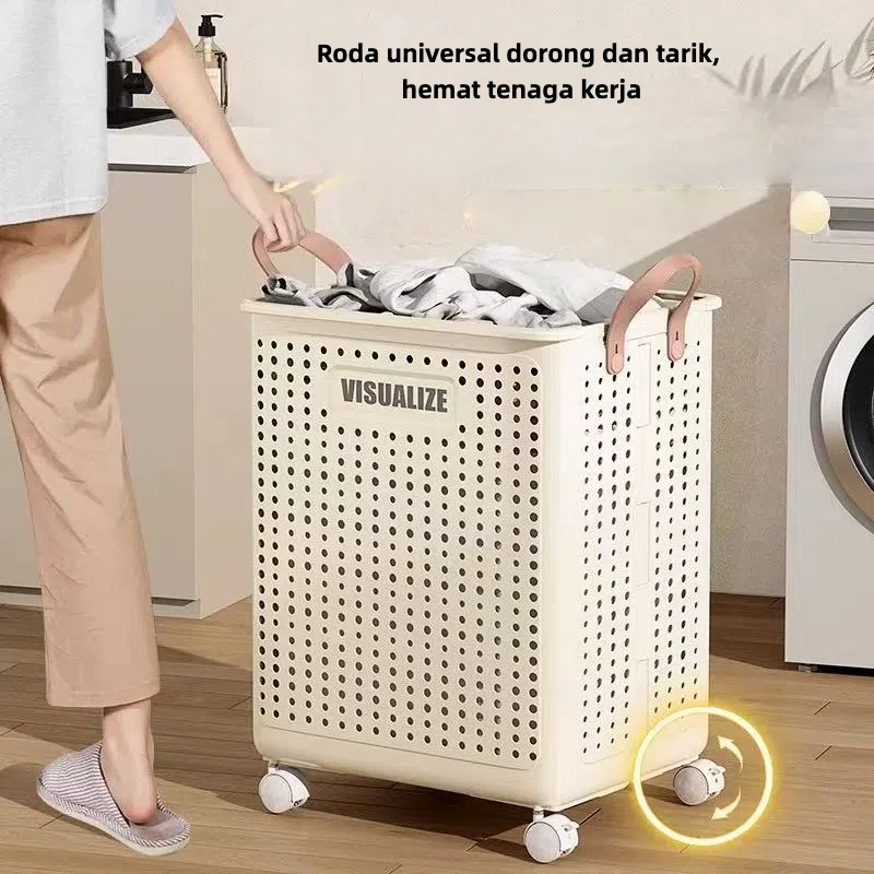 Keranjang Cucian Beroda Lipat Bernapas Asrama Keranjang Cucian Plastik Kapasitas Besar