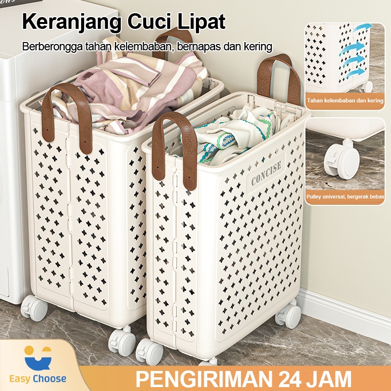 【Easy Choose】 Keranjang Pakaian Kotor Yang Dapat Dilipat Keranjang Penyimpanan Pakaian Kotor Dengan Roda Keranjang Cucia