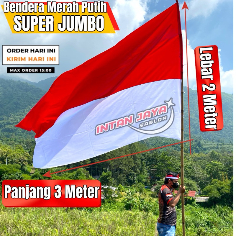 BENDERA MERAH-PUTIH UKURAN 3 METER X 2 METER /BENDERA UKURAN SUPER JUMBO