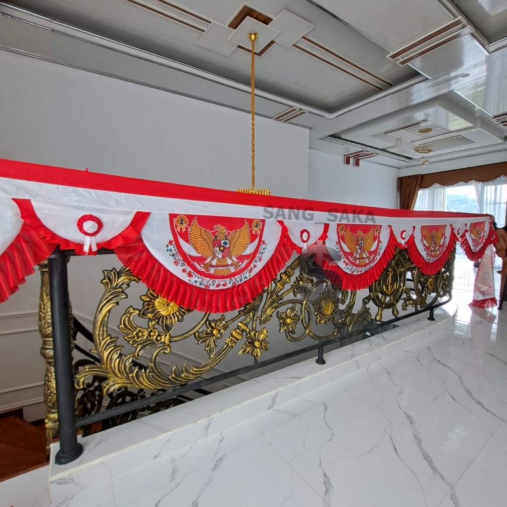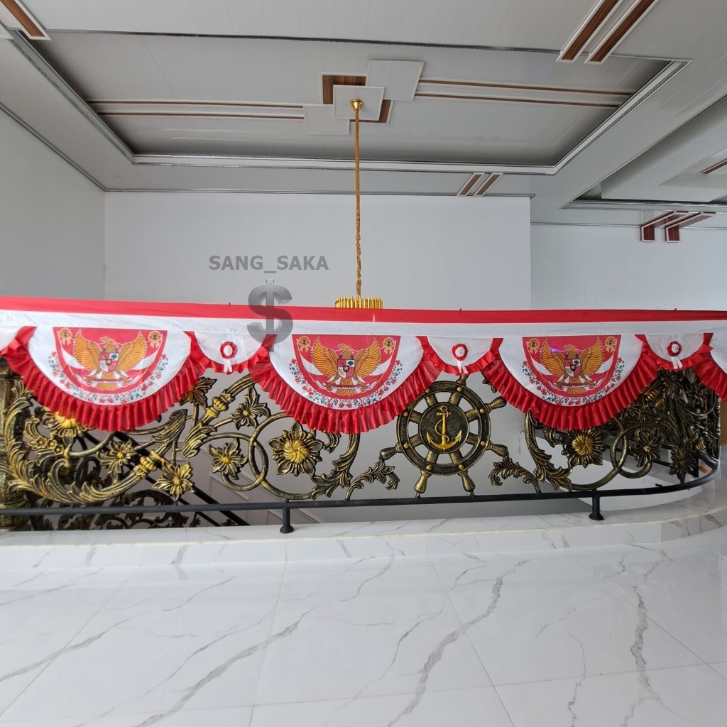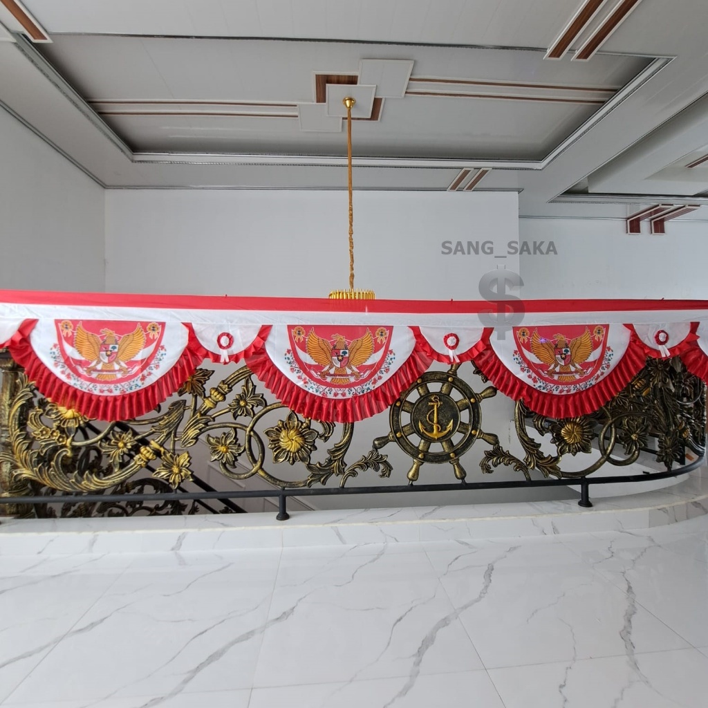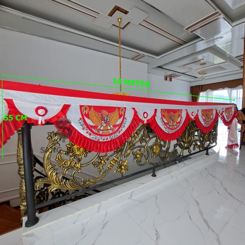 BENDERA BACKGROUND RUMBAI GARUDA BATIK PANJANG 10 METER MERAH PUTIH