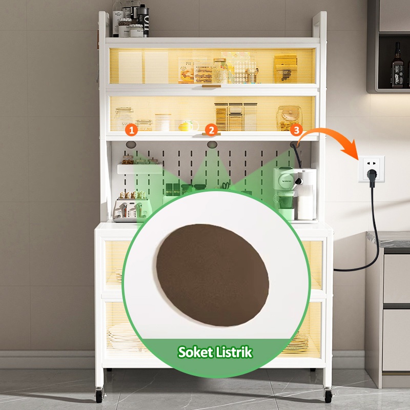 GSLIFE LEMARI PIRING MULTI-LAYER RAK DAPUR SERBAGUNA RAK PENYIMPANAN MICROWAVE OVEN DENGAN RODA PINTU