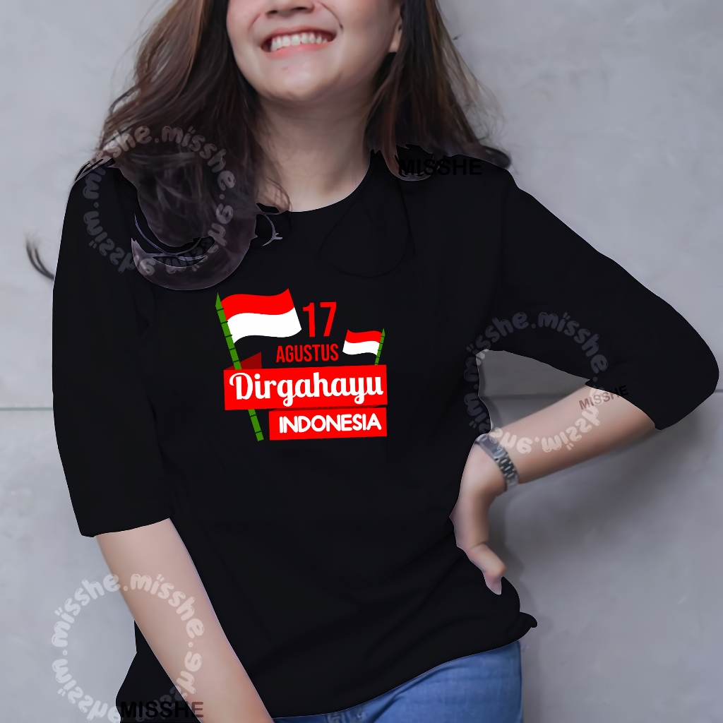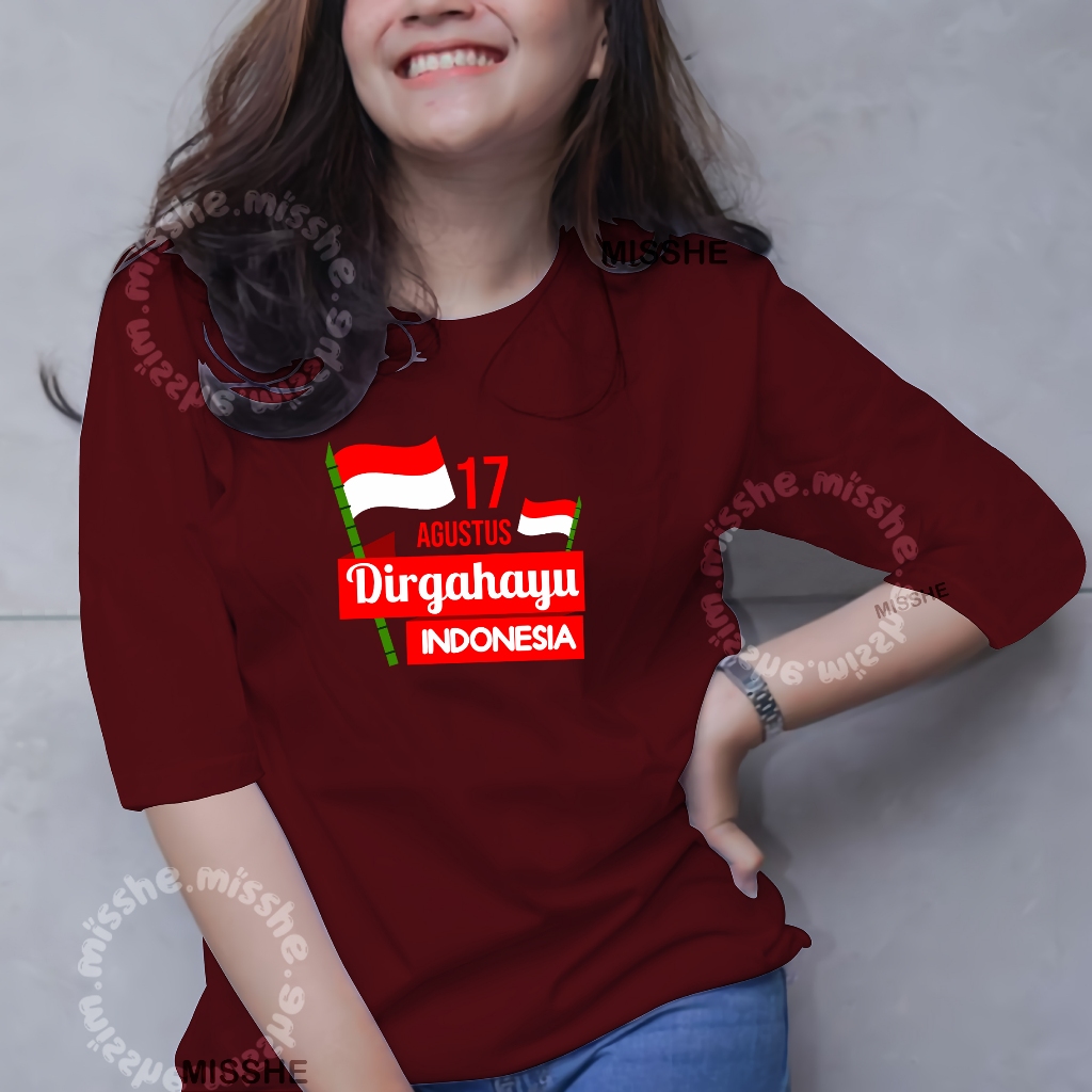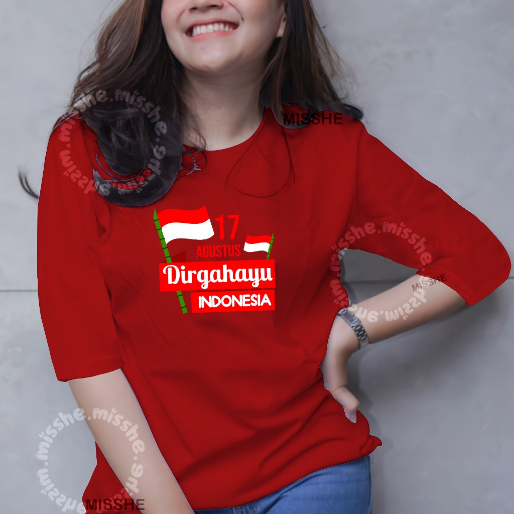 Tshirt Raglan 3/4 Motif Dtf 17 Agustus 2024 Dirgahayu Indonesia Merdeka Dri 79 04 / Kaos Katun Wanita / Baju Kaos Wanita