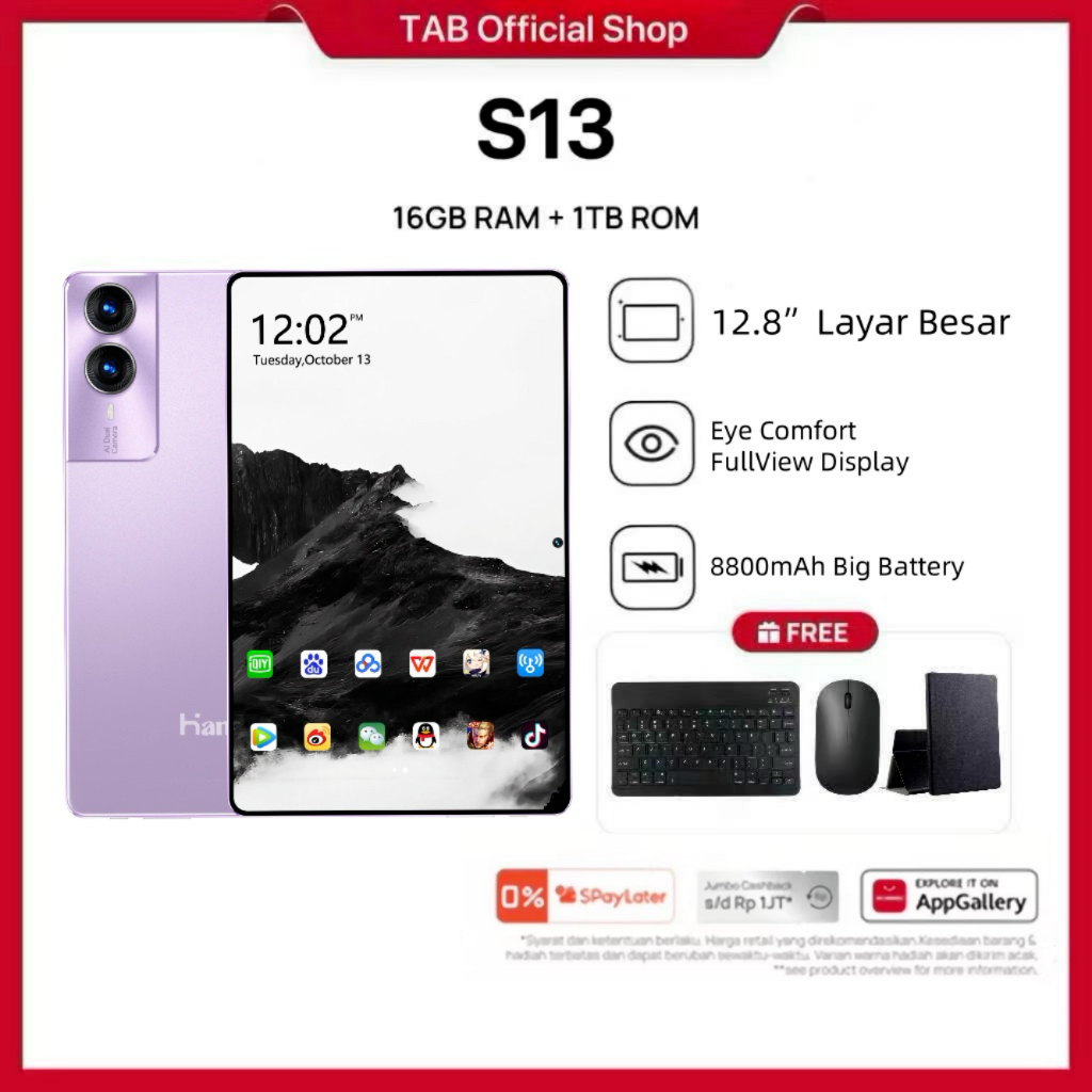 【Free Mouse Keyboard 】Tablet Android 2025 baru S13 12.8inch, RAM 16GB+1024GB S11D 10inch, 5G Dual SIM Layar Besar Murah Tab, cocok , kantor, belajar membaca