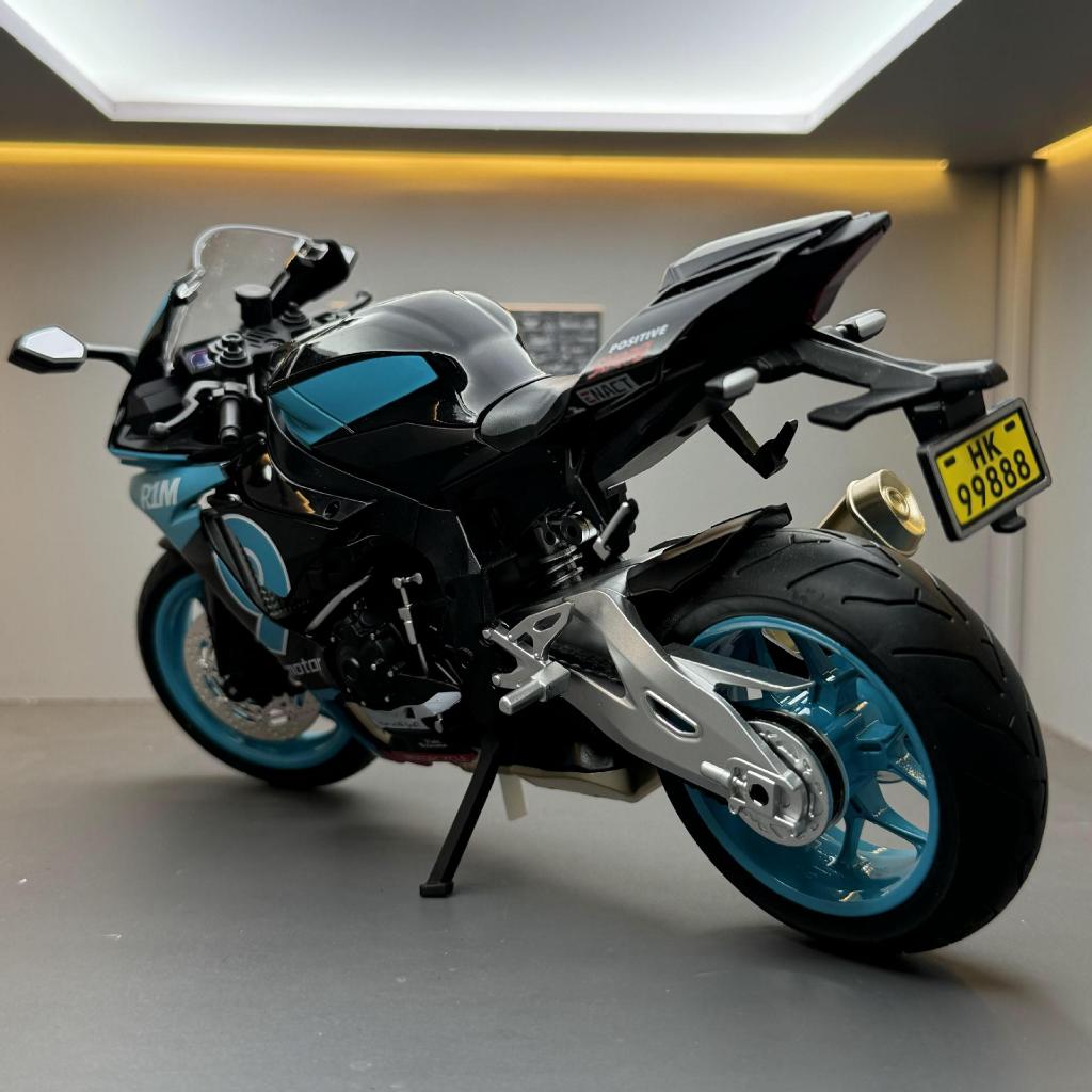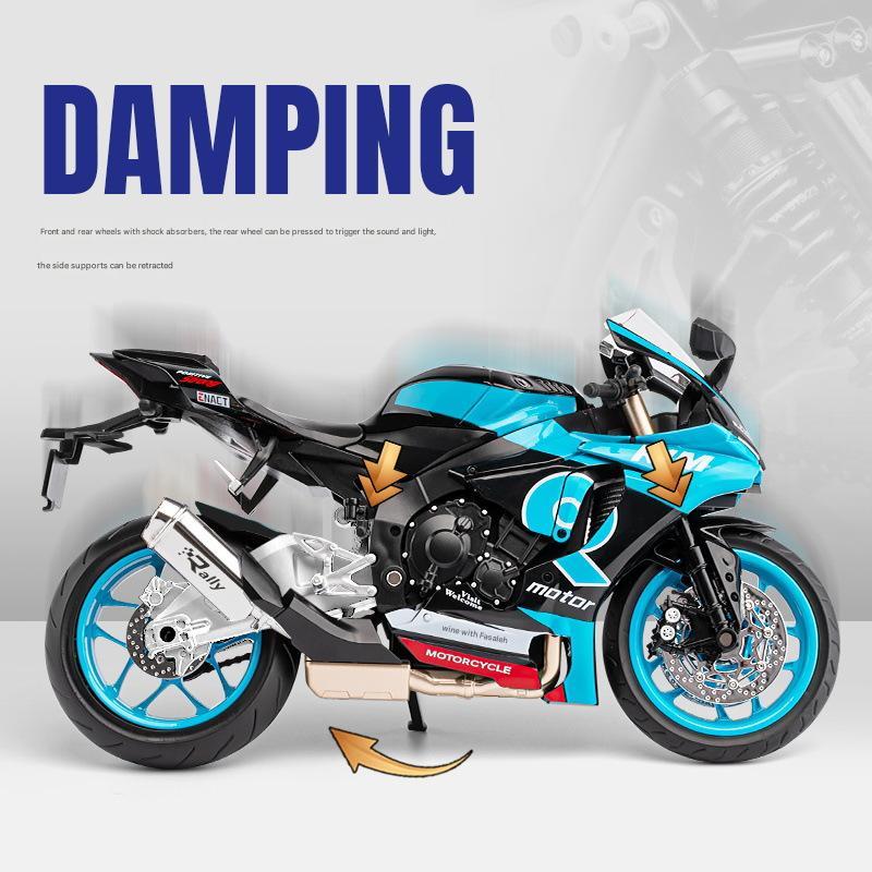 Jiaye Diecast Collection 1:9 Yamaha Ducati Kawasaki double Suspensi rantai bergerak Paddock, Suara