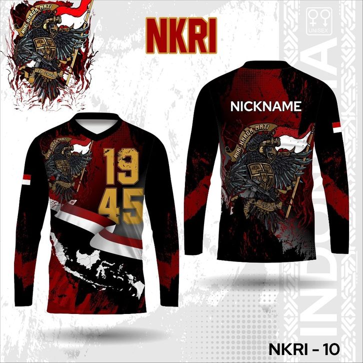 Kaos Nasionalisme Lengan Panjang Baju Hut Kemerdekaan Jersey RI Garuda Indonesia 1945 free custom nama dan logo