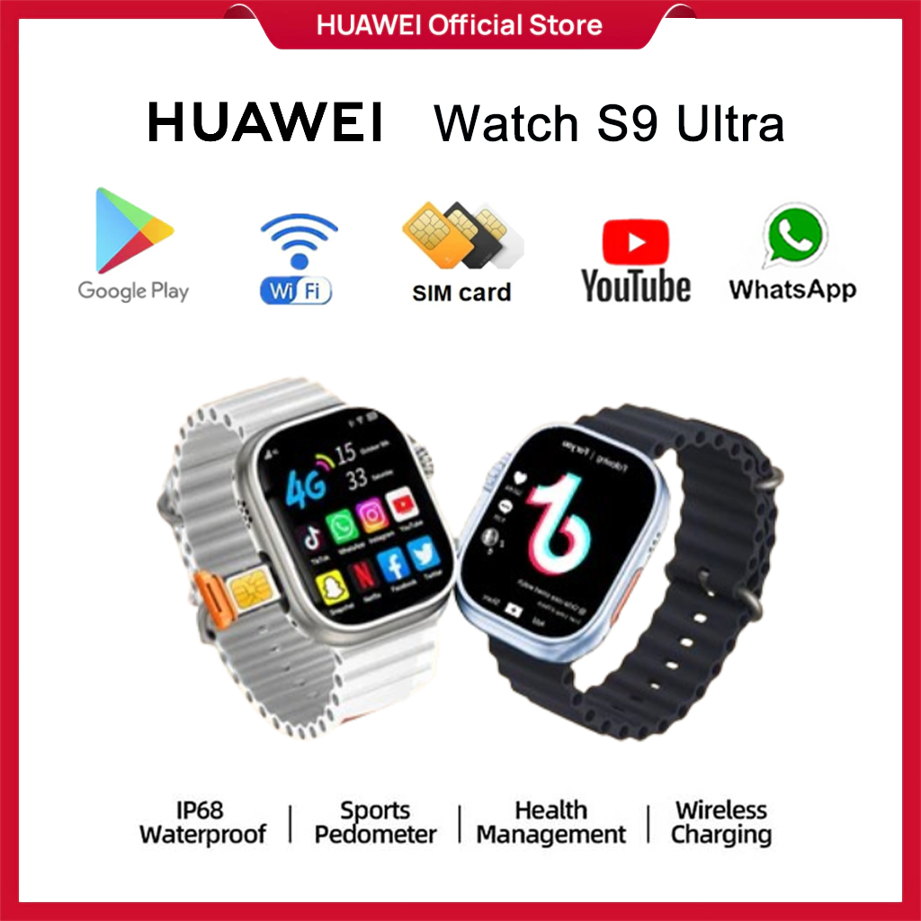 Huawei 4G Smartwatch S9 Ultra Sim Card Wifi 4+64GB Playstore Bluetooth Gps Nfc Full Touch Screen Phone Call Ip68 Waterproof Wireless Charge Sport Jam Tangan