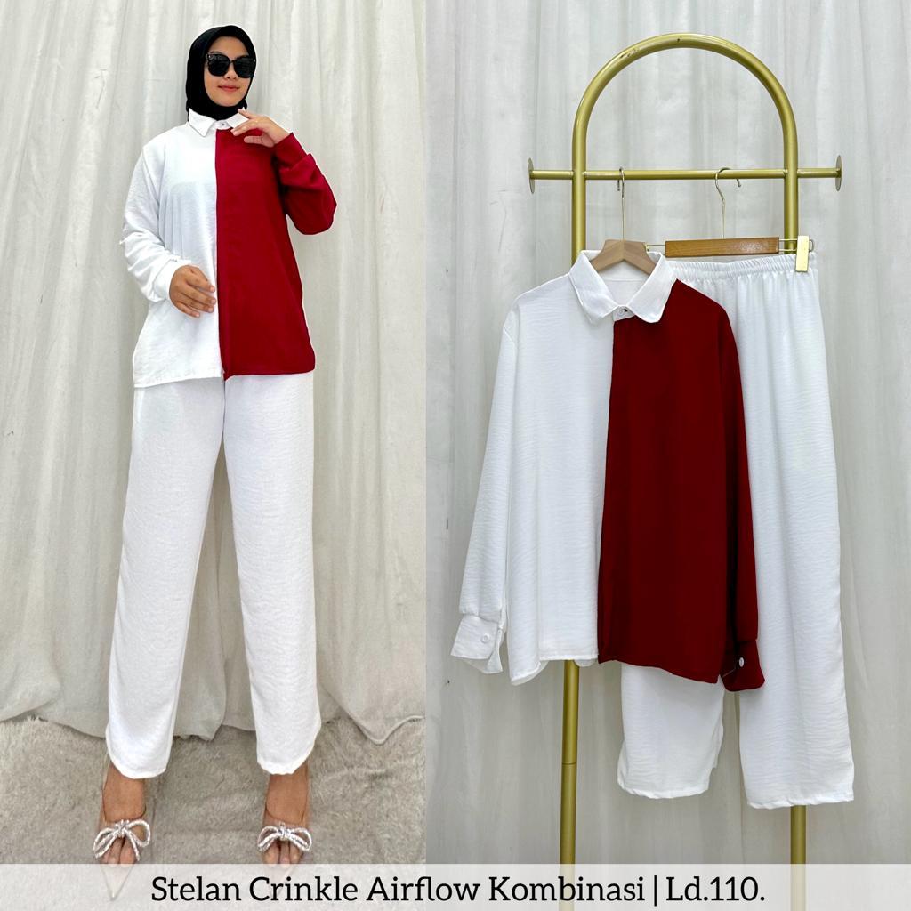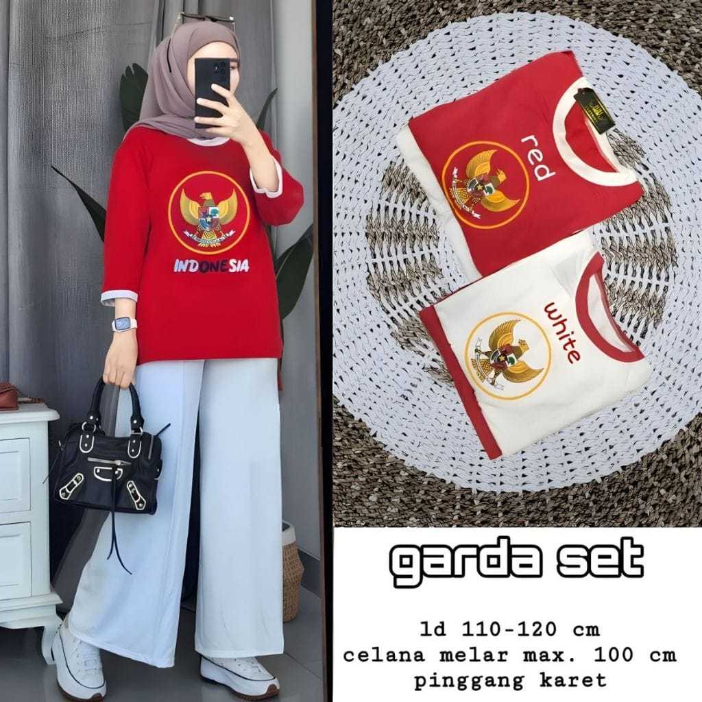 Garuda Set Crinkle Aiiflow || Baju setelan Wanita Kaos Hut Kemerdekaan || One Set Garuda Terbaru