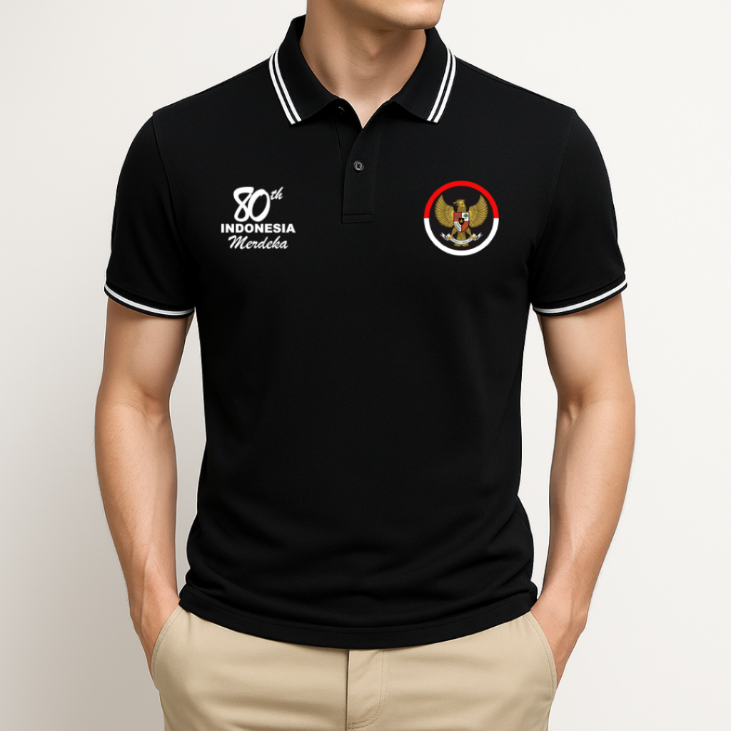Kaos Kerah Polo Seragam Kemerdekaan HUT RI 2025 Pria Wanita Kaos Polo List II Logo Garuda / Kaos Pria / Kaos Kerah Polo