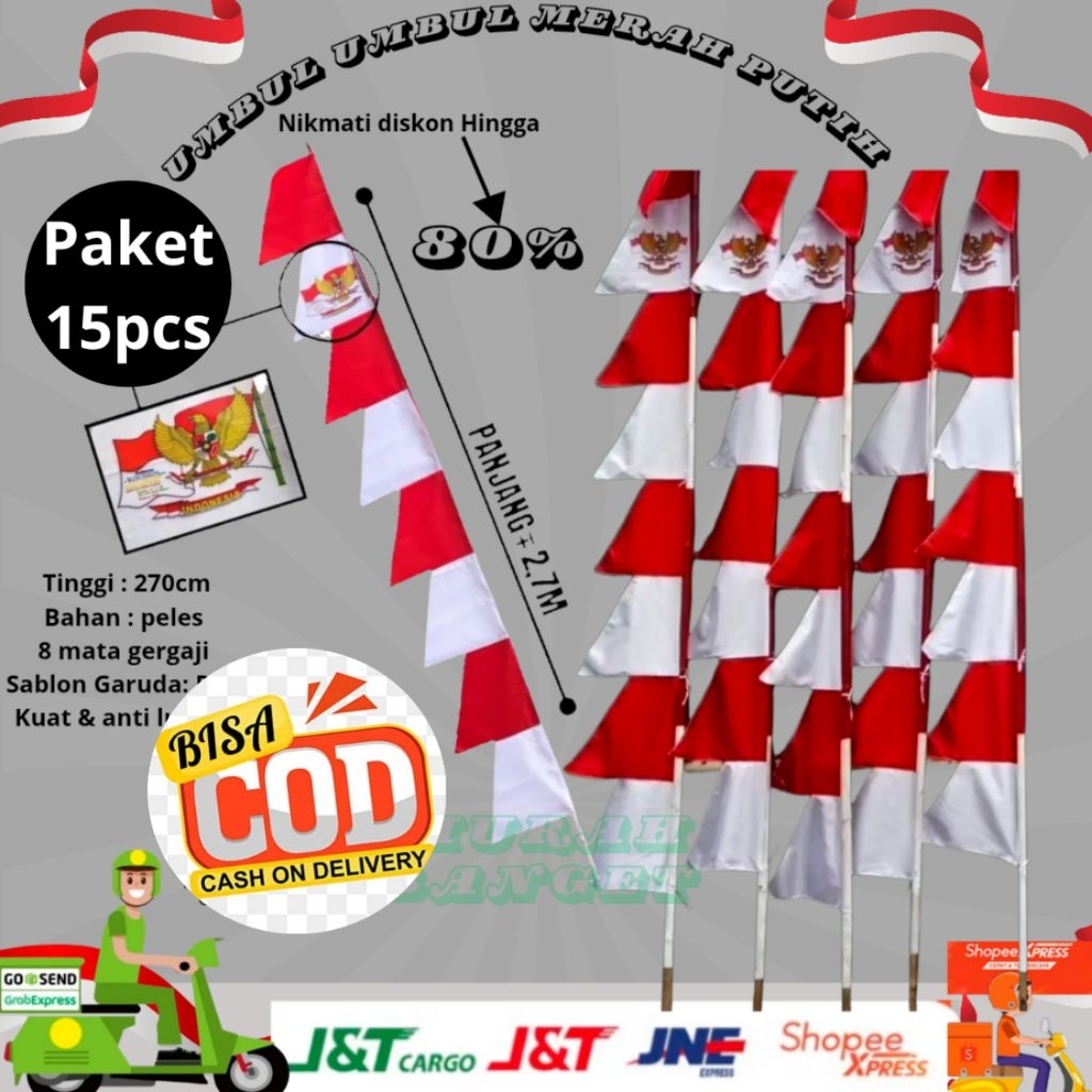 PAKET 15 PCS Bendera umbul umbul Garuda merah putih 3 meter 8 mata gergaji