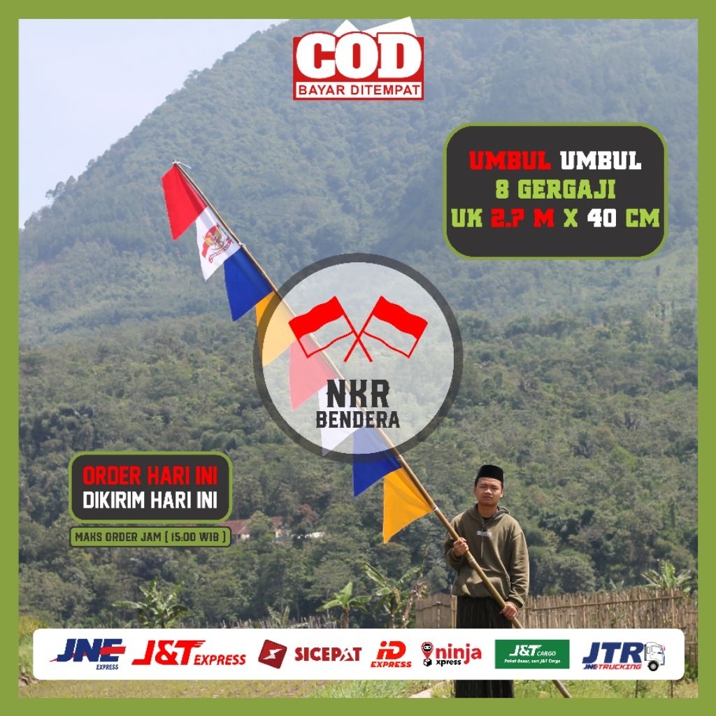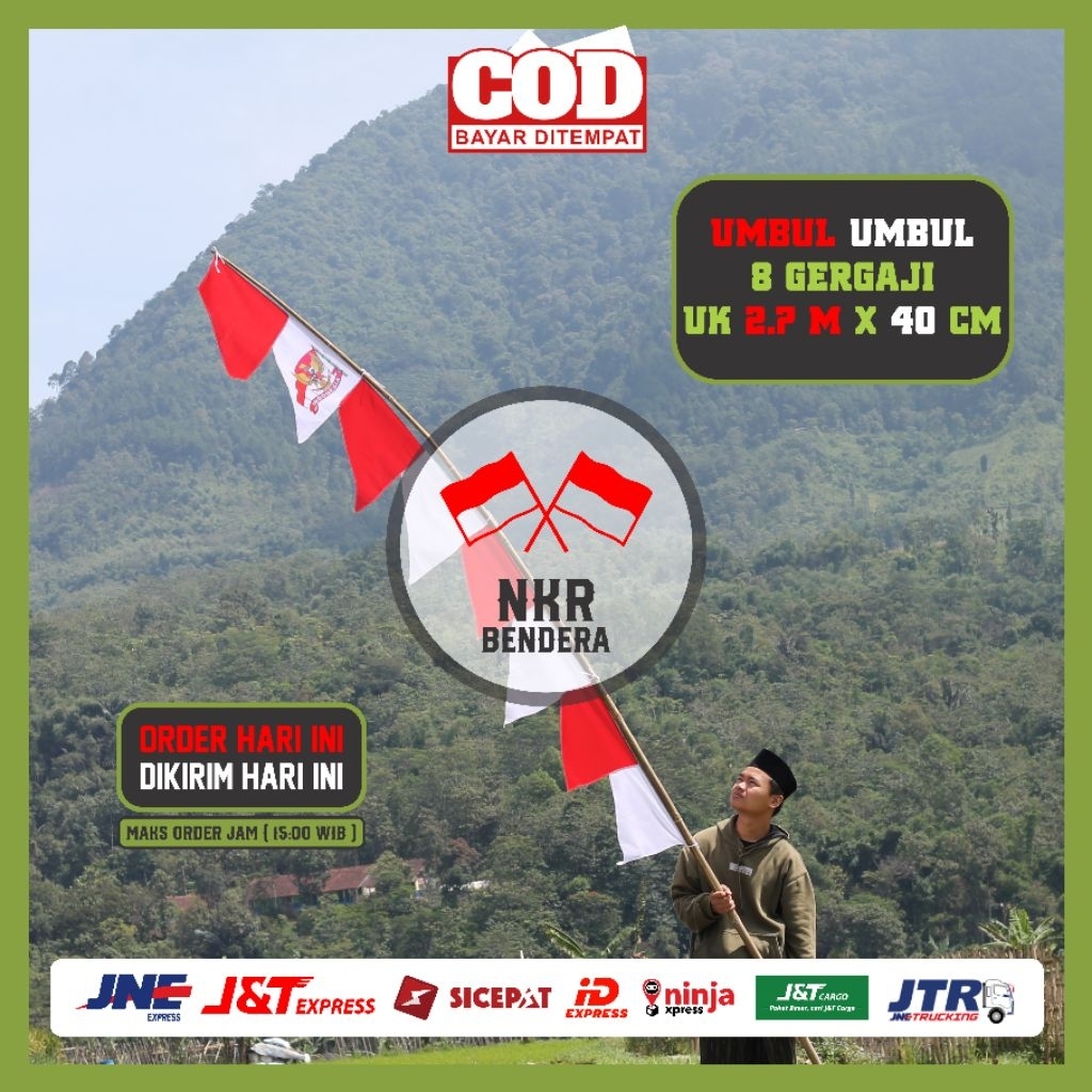 (20pcs) Bendera umbul umbul garuda merah putih warna warni 8 gergaji perlengkapan 17 agustusan panjang 2,70m