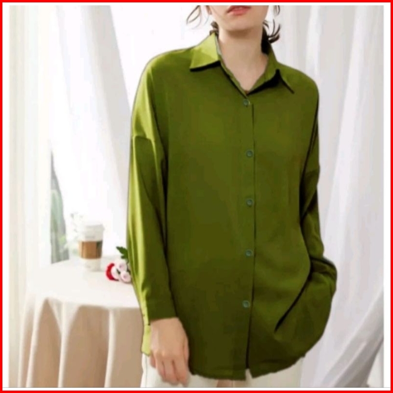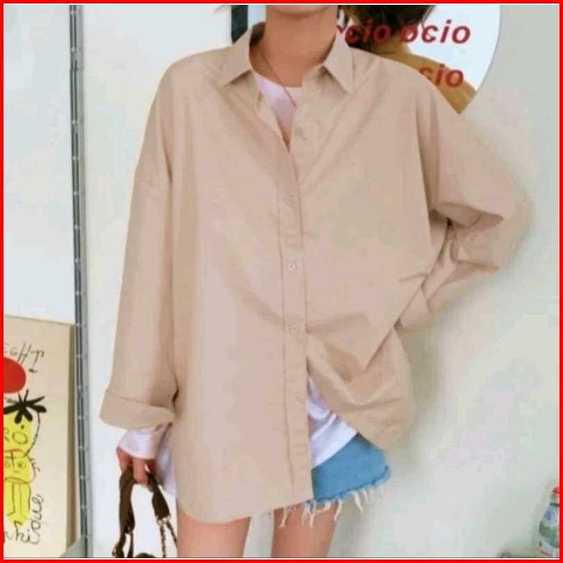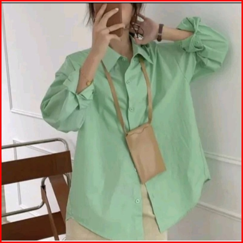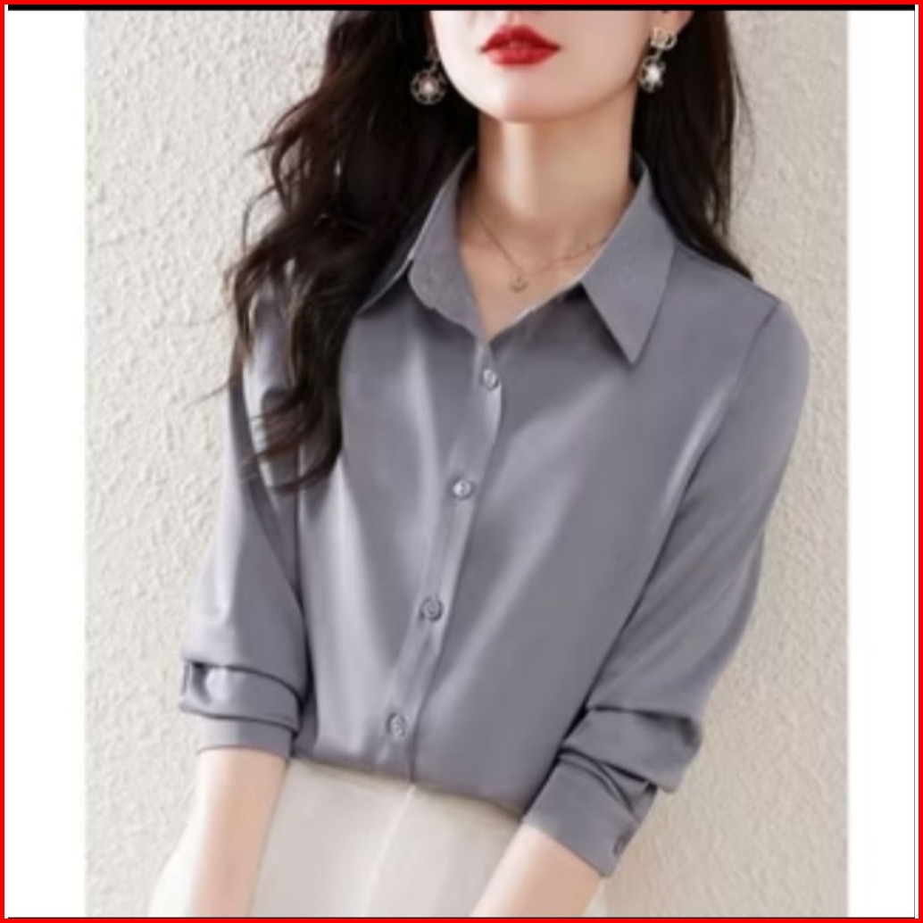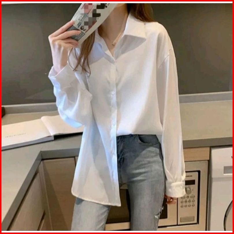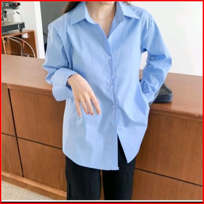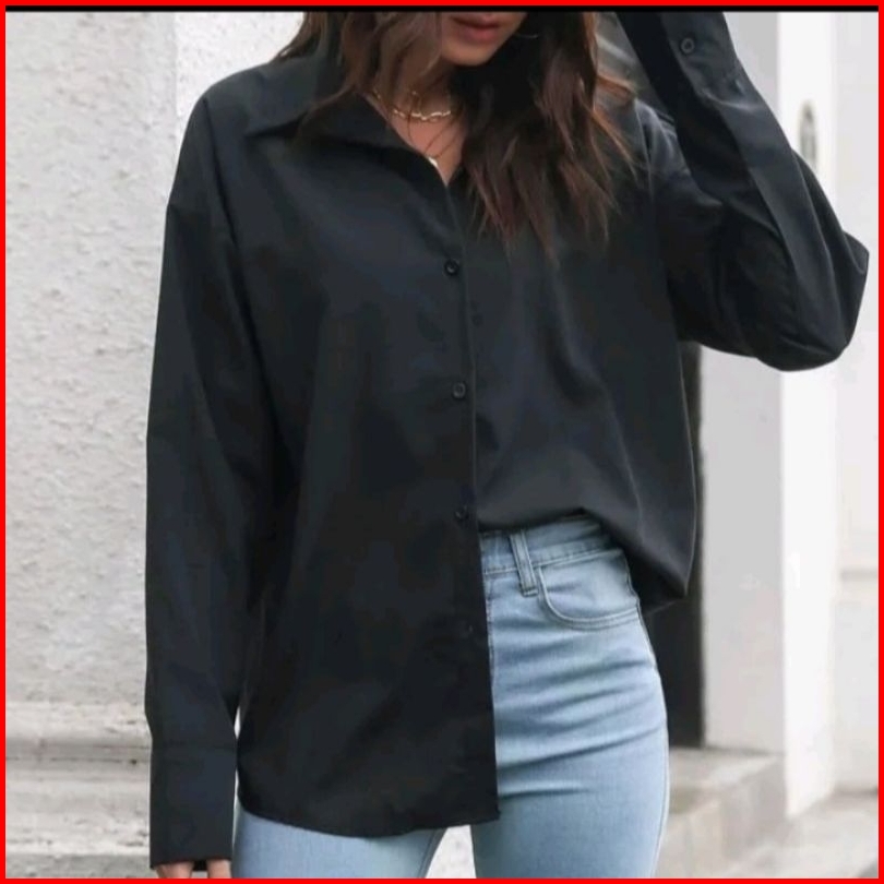 Kemeja Wanita Katun Basic Lengan Panjang Kasual Hitam Putih Navy Biru Muda Atasan Wanita Kerja