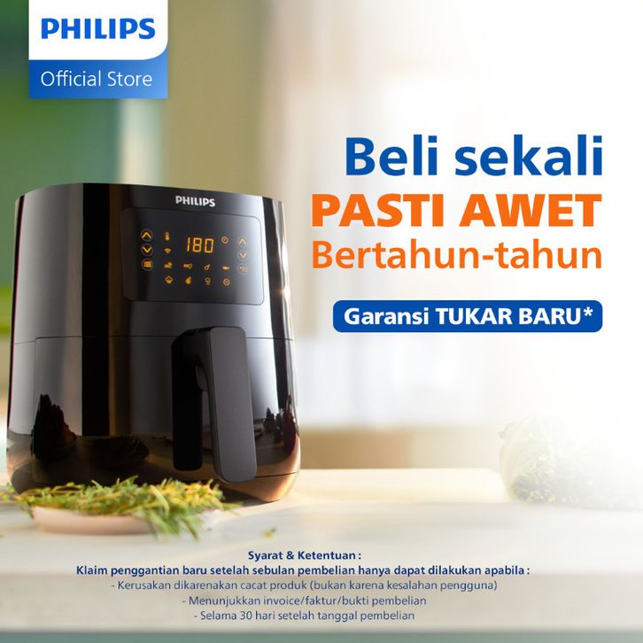 AIR FRYER PHILIPS LOW WATT 800 WATT HD9255/90 DIGITAL MULTIFUNGSI 4.1 L HITAM ORIGINAL - PHILIPS OFFICIAL STORE ID