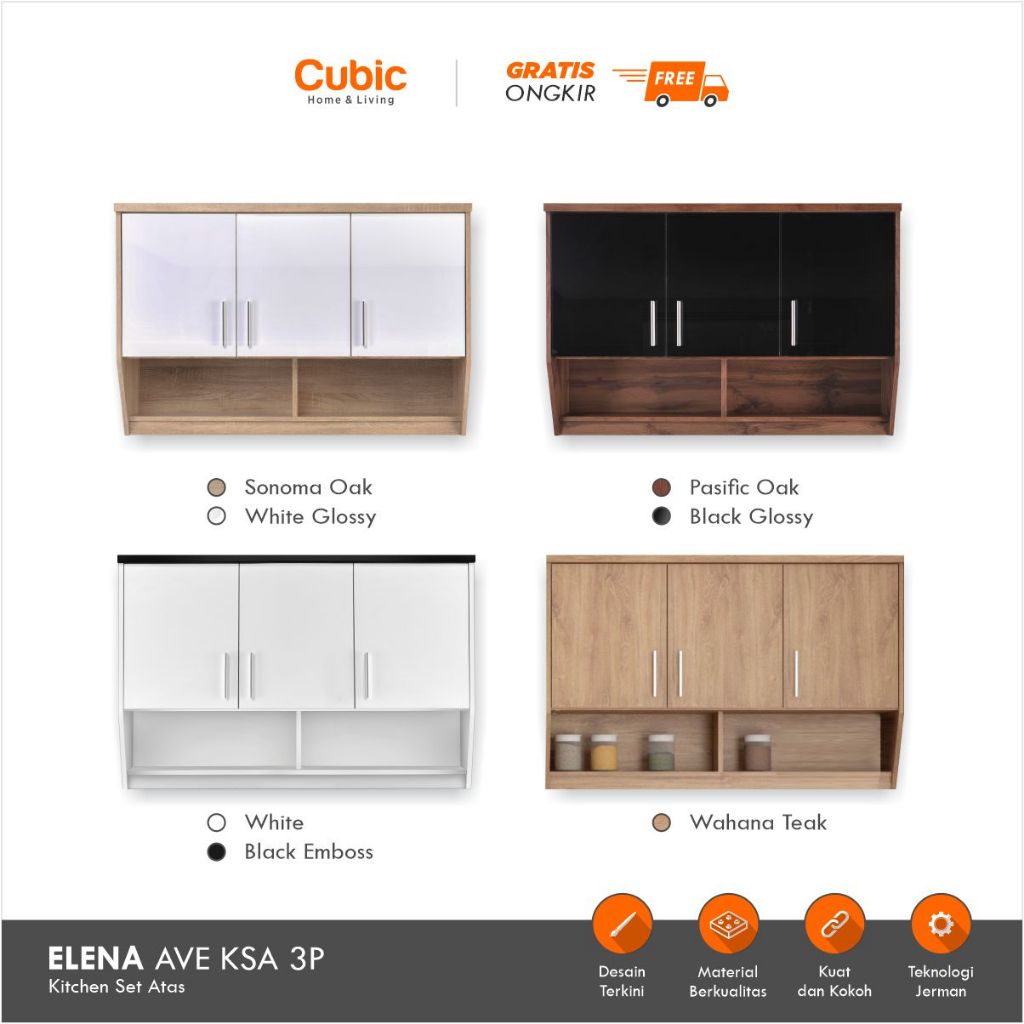 CUBIC KITCHEN SET 3 PINTU MINIMALIS RAK ATAS DAPUR ELENA AVE KSA 3P HITAM PUTIH