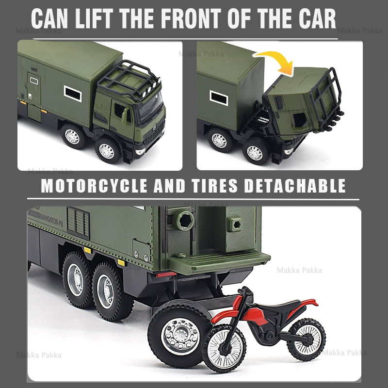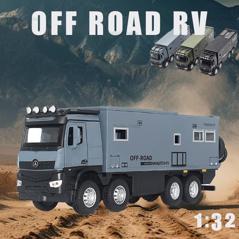 1:32 OFF ROAD RV Mobil / Miniatur Diecast Karavan Truk Off-road/Paduan el / Truk Militer / OFF ROAD RV+Sepeda Motor
