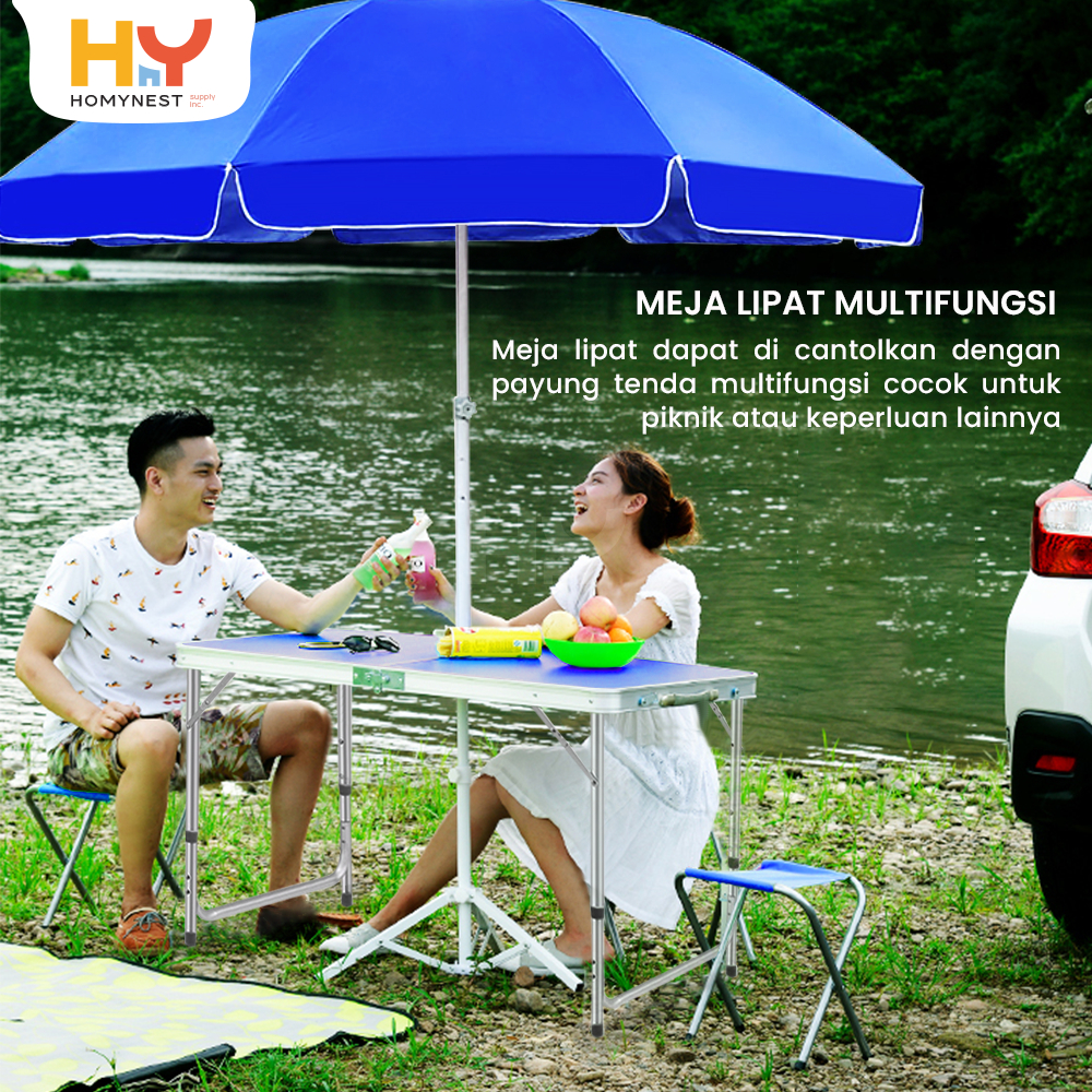 HOMYNEST Meja Lipat Jualan Lubang Tengah Payung Dagang 200CM Bahan Kayu Alumunium Anti Karat Kain Oxford Anti UV